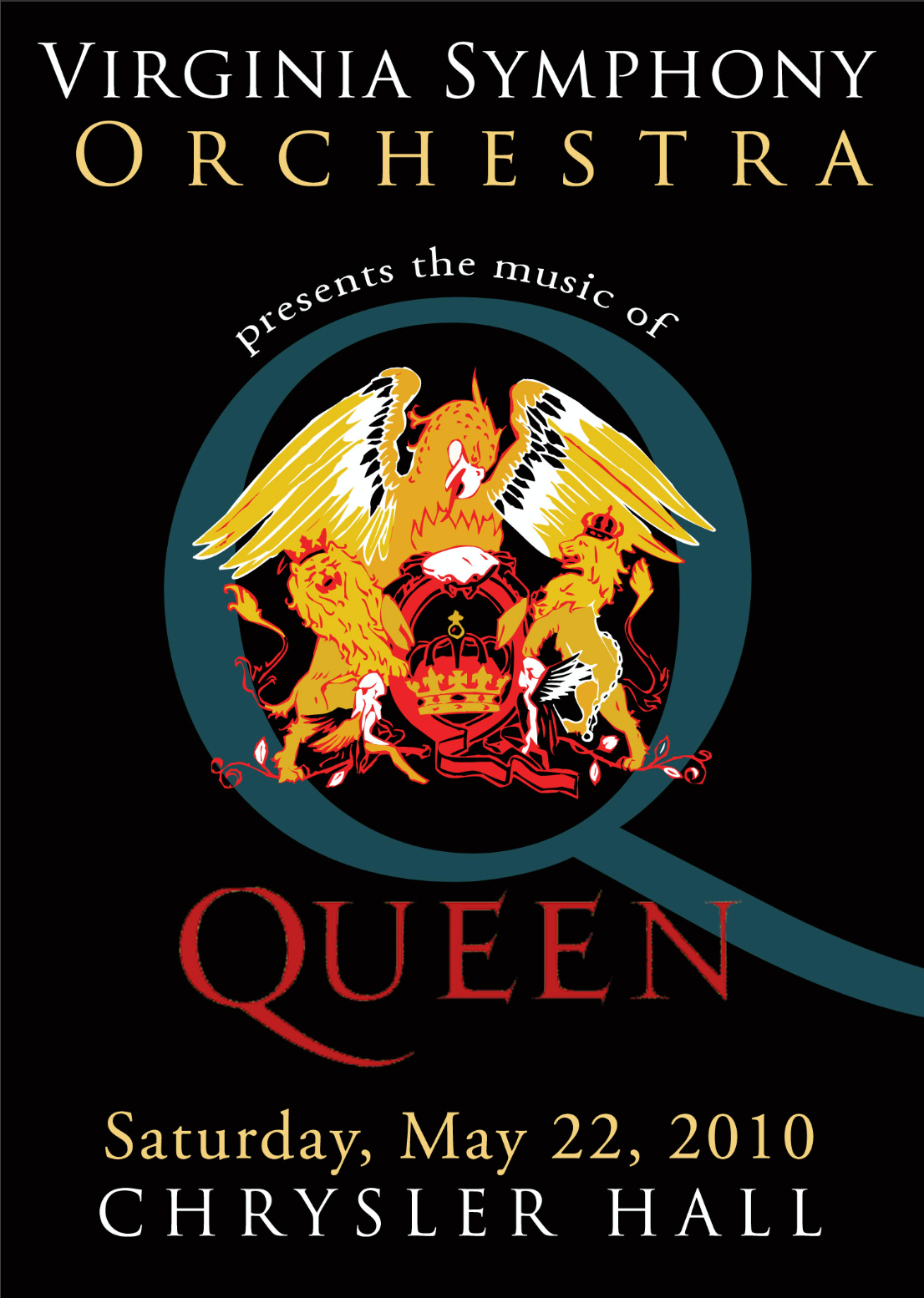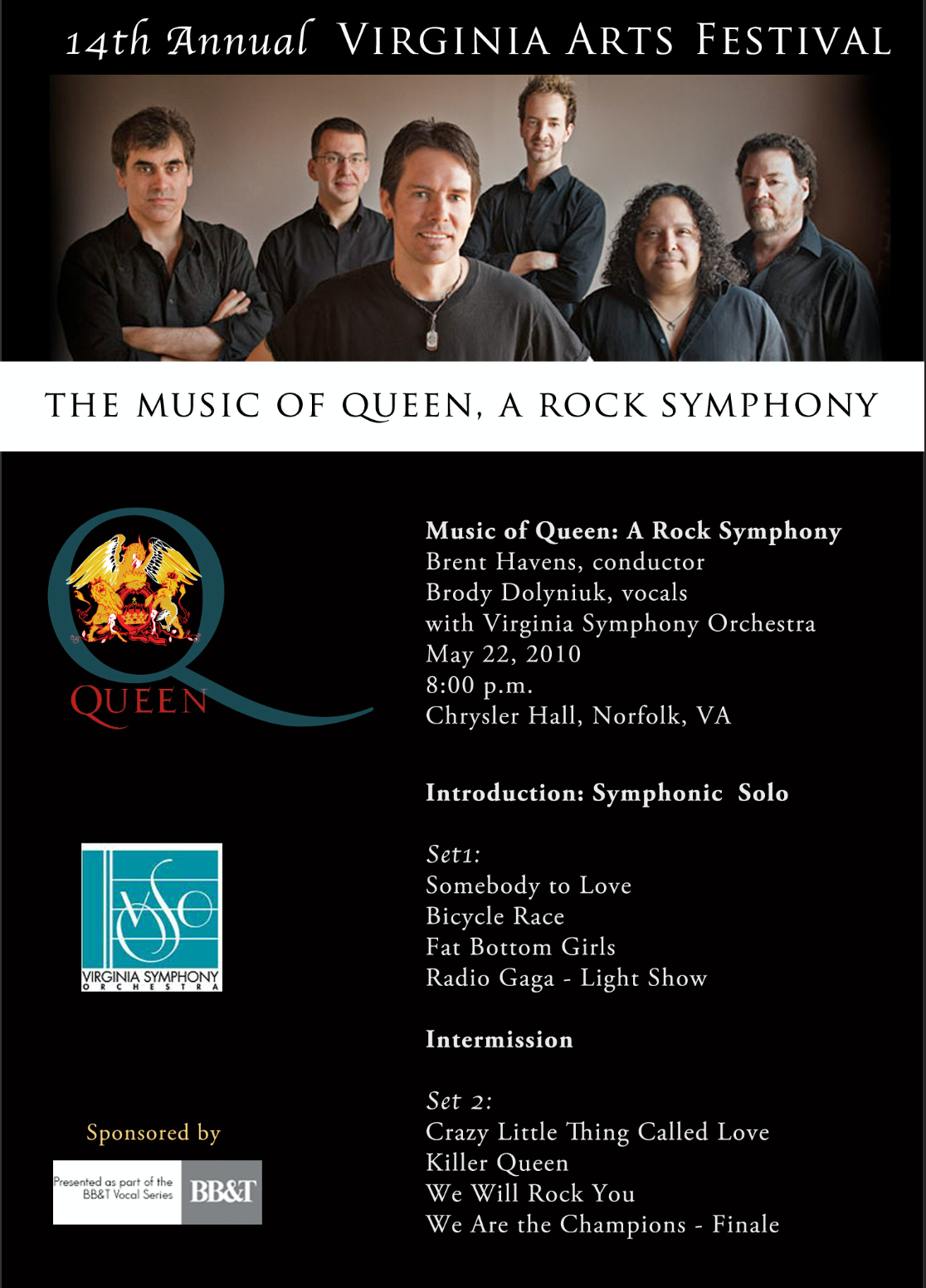 Event program for the Virginia Symphony Orchestra's Music of Queen, A Rock Symphony. Created in Photoshop. Circa 2010.